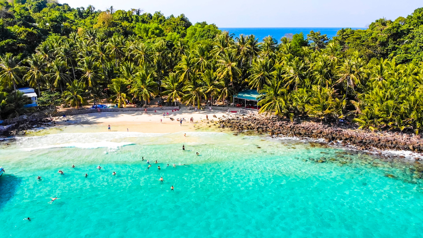 Đảo Phú Quốc trở thành địa điểm mà ai yêu biển không thể bỏ lỡ khi ghé thăm Việt Nam. Không gian tại đây được bao bọc bởi làn nước trong xanh như ngọc, đi kèm những bãi biển cát mịn. Với những gì thiên nhiên mang lại, du khách có thể sống chậm lại, thưởng thức một ly cocktail để ngắm hoàng hôn. Ngoài ra, khách du lịch còn có cơ hội khám phá công viên giải trí quy mô lớn và những khu rừng kì vĩ.