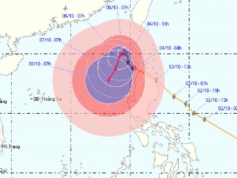 Đến 7 giờ ngày 7/10, vị trí tâm bão ở vào khoảng 18,8 độ Vĩ Bắc, 118,8 độ Kinh Đông, cách quần đảo Hoàng Sa 740 km về phía Đông Đông Bắc. Sức gió mạnh nhất vùng gần tâm bão mạnh cấp 12 (từ 118 đến 133 km/giờ), giật cấp 13, cấp 14.
