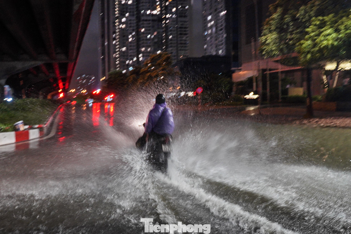| Dù cơn mưa đã ngừng rơi vào rạng sáng 8/9, nhưng theo ghi nhận của PV Tiền Phong, đường Triều Khúc vẫn ngập sâu, nước lênh láng khắp nơi. |