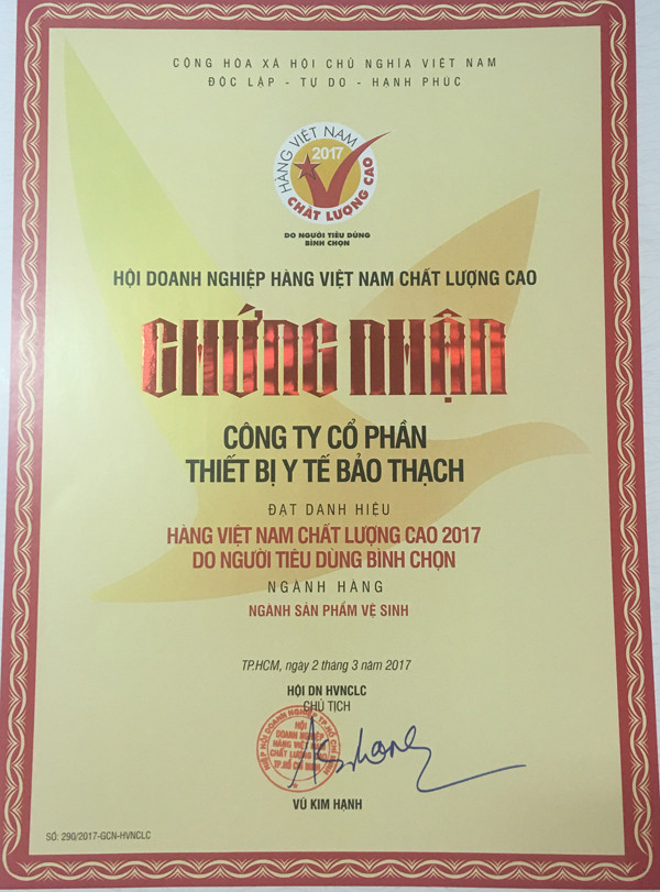 -Từ năm 2010 đến nay, Cty Bảo Thạch luôn đạt được danh hiệu “ Hàng Việt Nam chất lượng cao do người tiêu dùng bình chọn”.