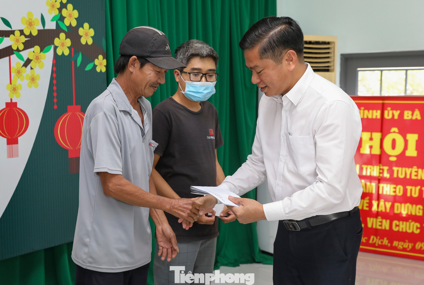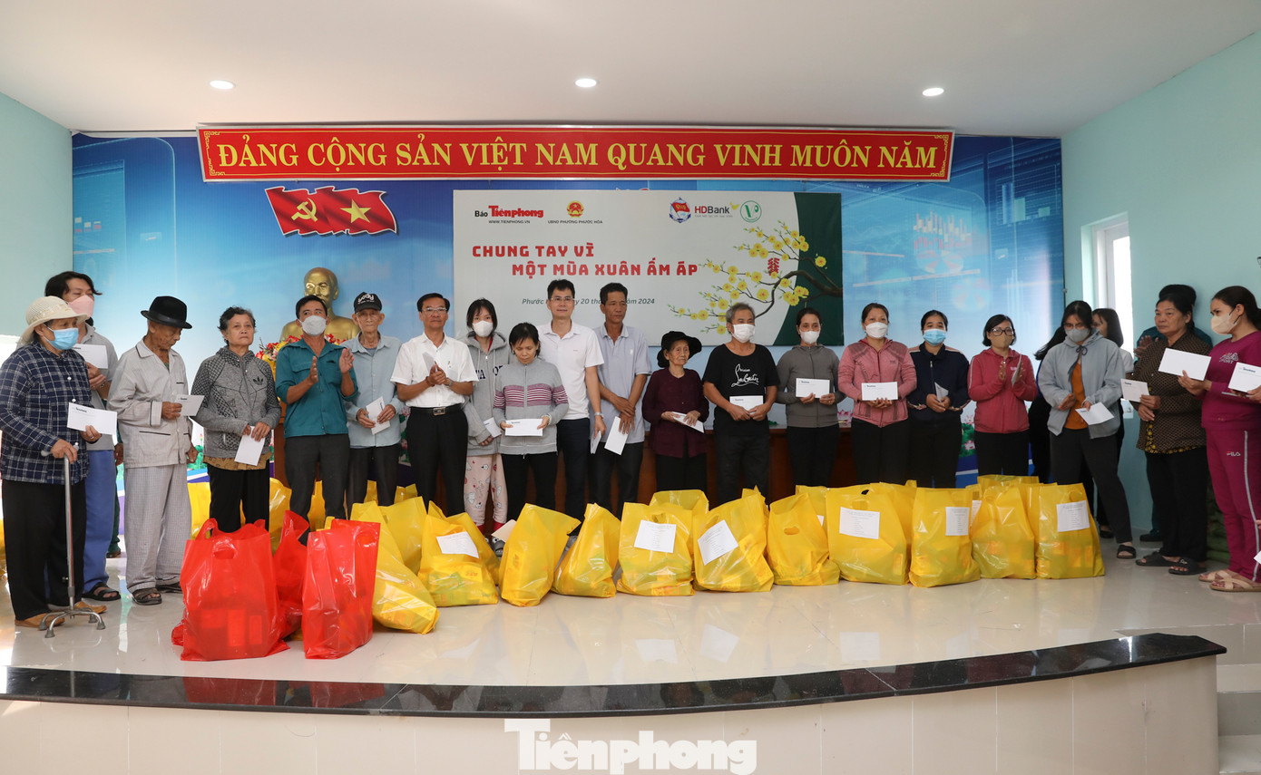“Hôm nay, Báo Tiền Phong phối hợp với các mạnh thường quân tặng 100 phần quà cho bà con phường Phước Hoà và 100 phần quà cho bà con phường Hắc Dịch. Chúng tôi hy vọng món quà nhỏ này góp phần động viên người dân đón Tết thêm ấm áp”, Nhà báo Lý Thành Tâm nói.