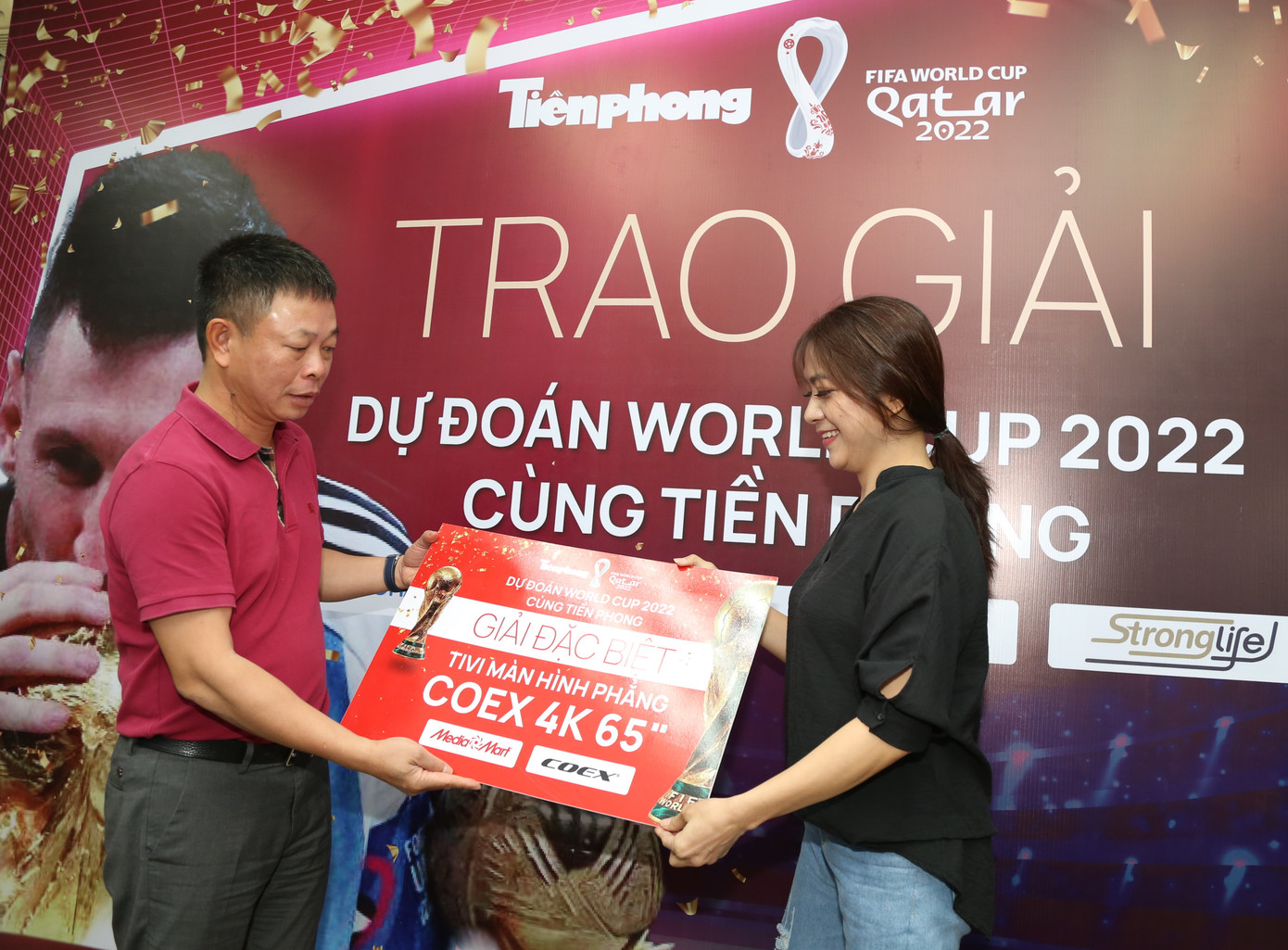Kết quả chung cuộc, báo Tiền Phong và các đơn vị đồng hành đã trao giải thưởng đặc biệt dành cho chị Thái Tú Phương (ngụ TPHCM) với phần thưởng là chiếc tivi Coex 4K 65 inch. Độc giả này đã dự đoán chính xác kết quả Hòa 3 – 3 (kết quả các hiệp đấu chính thức và hiệp phụ) trong trận Chung kết World Cup 2022 giữa hai đội Argentina và Pháp diễn ra khuya 18/12 vừa qua.
