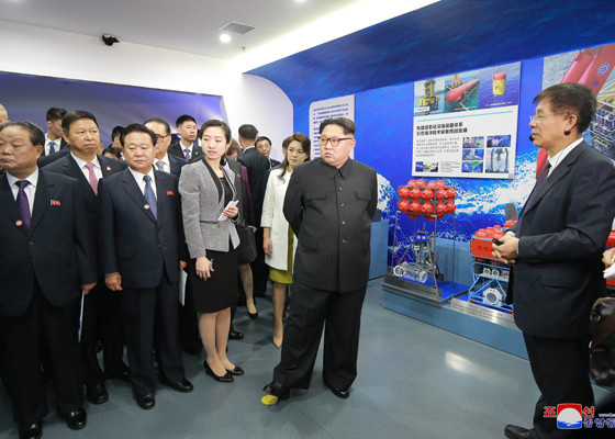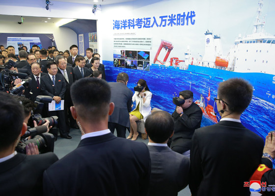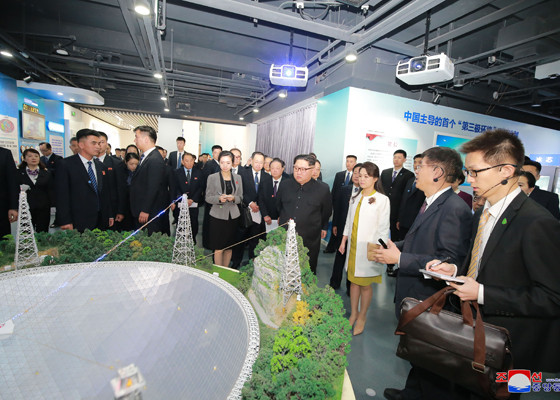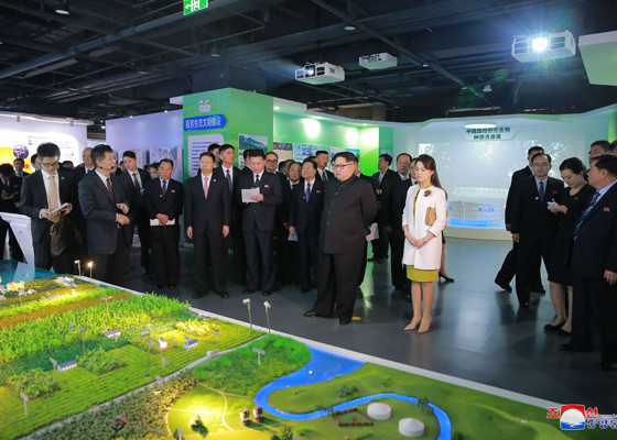 Vợ chồng nhà lãnh đạo Triều Tiên tới thăm Viện Khoa học Trung Quốc. Ảnh: Rodong Sinmun