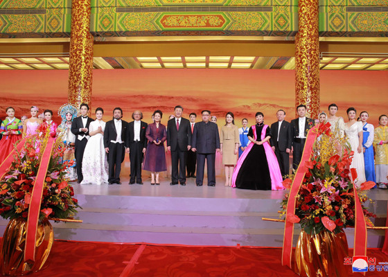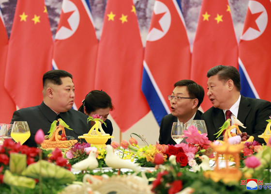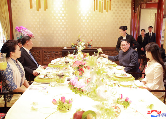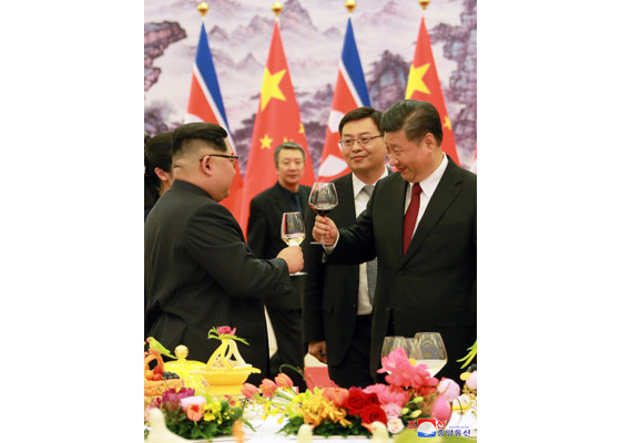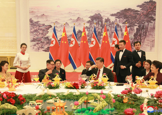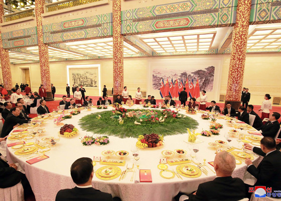 Phát biểu tại tiệc chiêu đãi, Chủ tịch Triều Tiên Kim Jong-un cho biết ông thăm Trung Quốc với mong muốn mang lại hòa bình, ổn định trên bán đảo Triều Tiên, và phát triển quan hệ hữu nghị Bình Nhưỡng - Bắc Kinh.