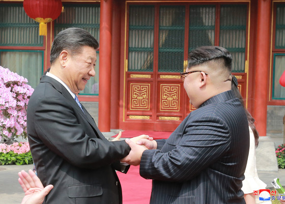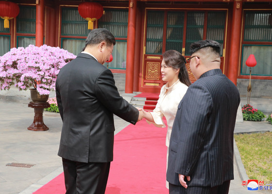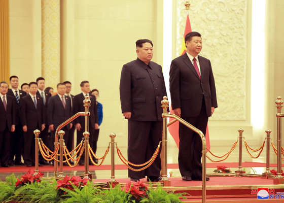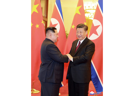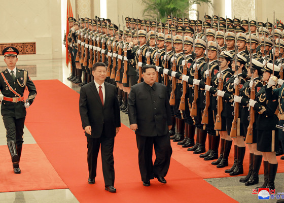 Chủ tịch Triều Tiên Kim Jong-un được Chủ tịch Trung Quốc Tập Cận Bình đón tiếp trang trọng. Ảnh: Rodong Sinmun