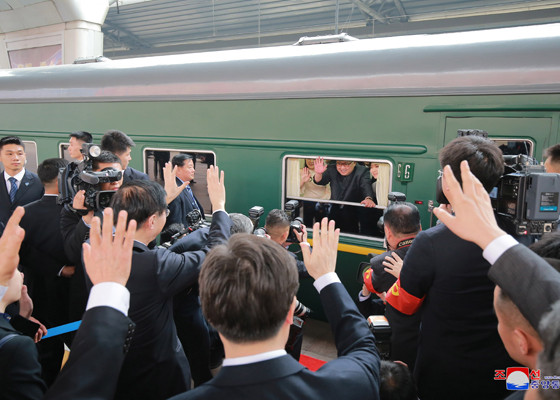 Giới truyền thông quốc tế đưa tin đoàn tàu chở ông Kim Jong-un và phu nhân đã rời Bắc Kinh vào chiều ngày 27/3. Ảnh: Rodong Sinmun