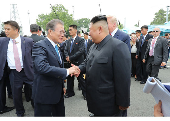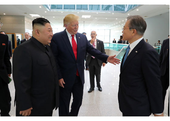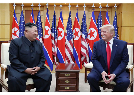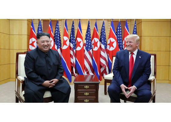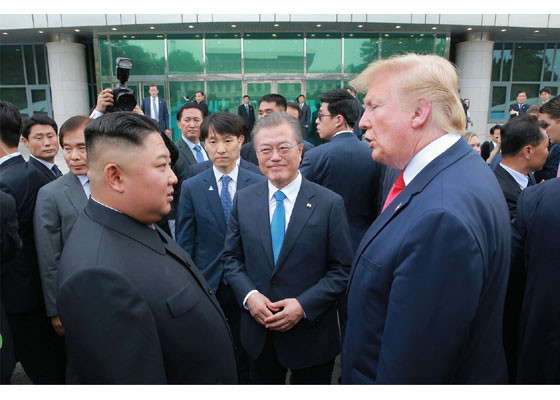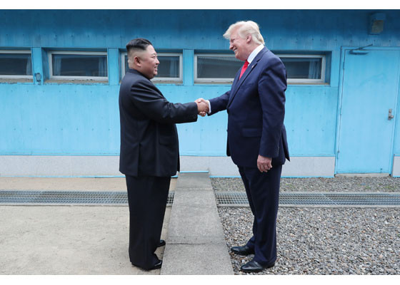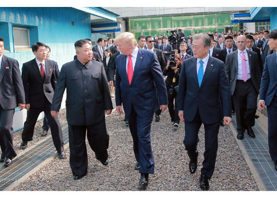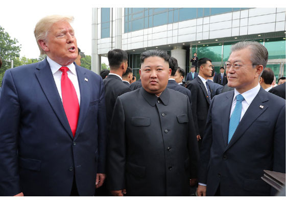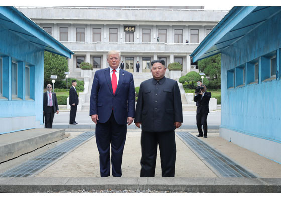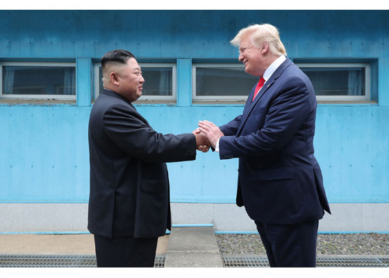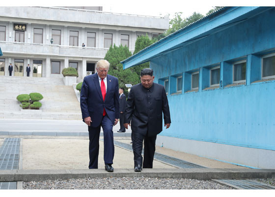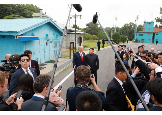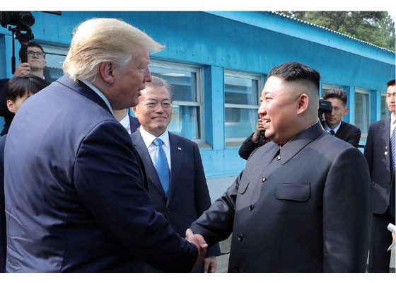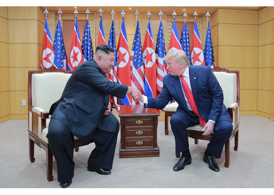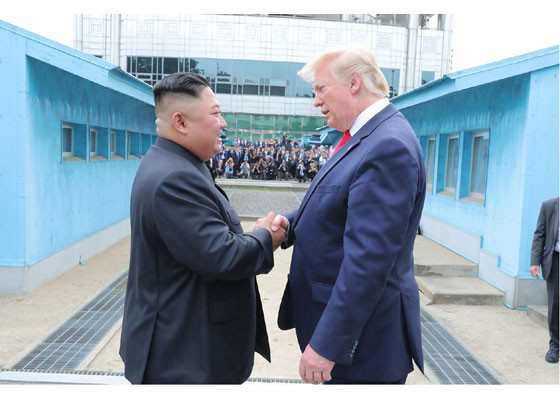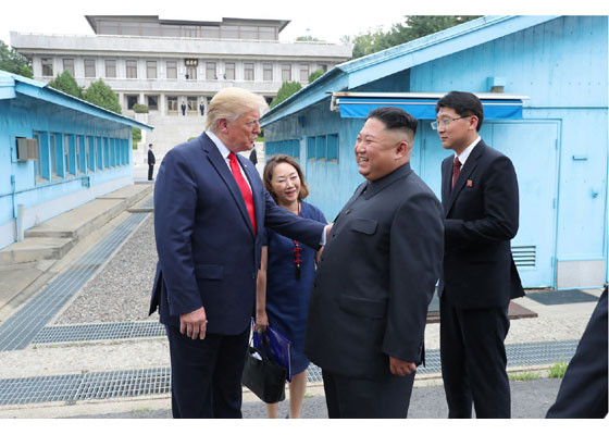 Bằng hành động này, ông Trump đã trở thành Tổng thống Mỹ đương nhiệm đầu tiên đặt chân lên lãnh thổ Triều Tiên. Ảnh: Rodong Sinmun