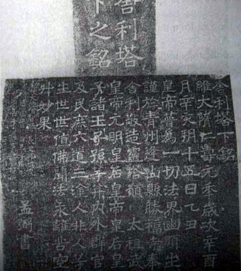 7. Bia “Xá Lợi Tháp Minh” (Niên đại: năm 601, hiện lưu giữ tại Bảo tàng tỉnh Bắc Ninh).