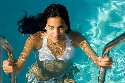 Trước khi xuống bể bơi, bạn nên làm ướt tóc và toàn thân bằng nước sạch không chứa clo. Hãy để tóc ngậm nước thoải mái trong khoảng 3-5 phút. Khi tóc và da đã bão hòa nước ngọt thì chúng sẽ ít hấp thụ nước trong hồ. Tất nhiên điều đó giúp giảm sự tác hại của clo. Bạn cũng có thể áp dụng cách này trước khi tắm biển để da và tóc ít bị ảnh hưởng của muối.