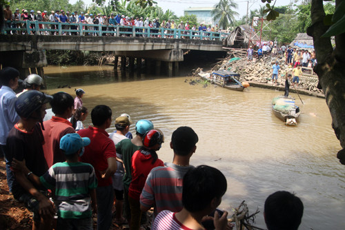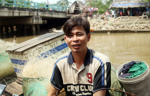 Với kinh nghiệm của người bắt cá nhiều năm, anh Dũng dùng dây đưa vào mang và luồn ra miệng, buộc con cá lại và nhờ người anh kéo vào chân cầu Rạch Mương cách chỗ bắt cá vài trăm mét. "Nếu người không có kinh nghiệm thì một mình khó bắt được con cá to này", anh Dũng hồ hởi cho biết.