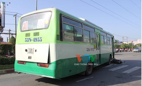 Hậu quả là người ngồi phía sau xe máy văng xa ra phía ngoài. Ông Ngọc cùng xe máy mắc kẹt dưới gầm xe buýt và bị chiếc xe này kéo lê một đoạn trên đường.
