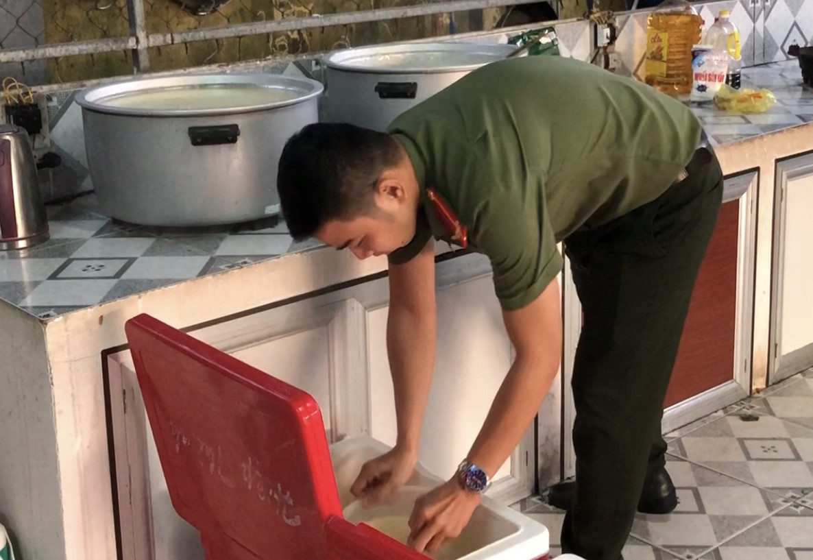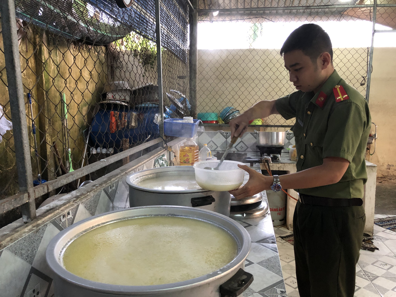 Trực tiếp tham gia nấu chính, Thượng úy Nhân cho biết, anh chưa từng nấu thức ăn số lượng vài trăm phần như thế nhưng cũng cố gắng cùng với anh em, mỗi người một việc để có nồi cháo thành phẩm thơm ngon, chất lượng, hợp vệ sinh, đảm bảo đầy đủ dinh dưỡng.