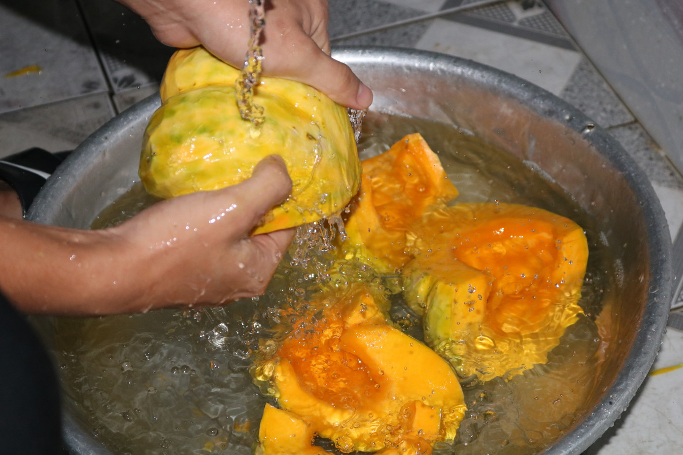 Các công đoạn sơ chế nguyên liệu được thực hiện từ tối hôm trước - Ảnh: Kim Hà.