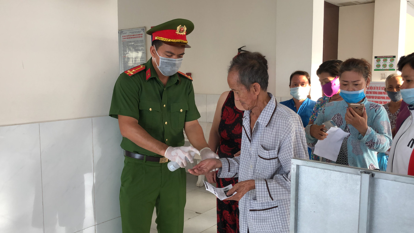 Cầm bát cháo nóng trên tay bà Nguyễn Thị Hậu (83 tuổi, ngụ huyện Tam Bình, tỉnh Vĩnh Long) chia sẻ: “Tôi nuôi chồng tôi bệnh nằm viện 2 tuần nay. Đây là lần thứ 2 tôi được nhận cháo. Mấy cô chú công an nấu rất ngon, lần trước cho ông nhà tôi ăn ổng cứ khen hoài, cứ trông tới đợt phát để nhận”.