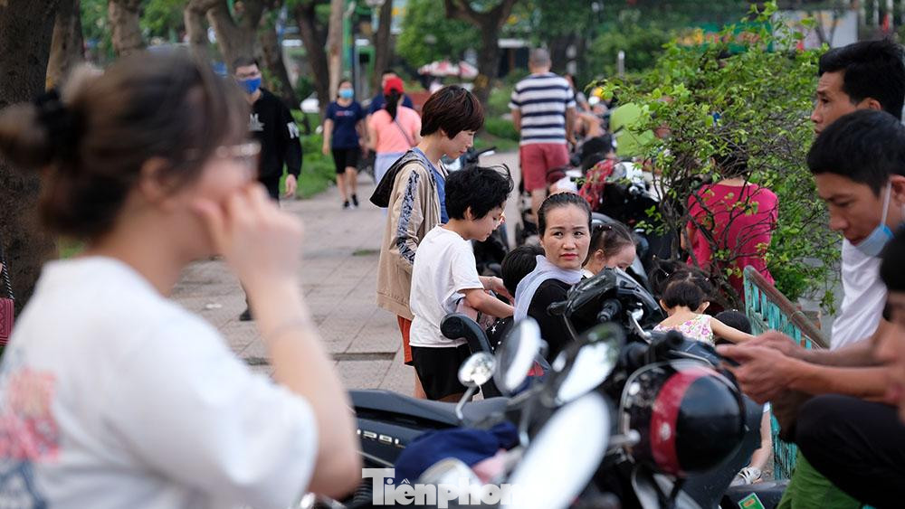 | Hôm nay là ngày thứ 3 trong dịp nghỉ lễ kéo dài 4 ngày, mặc dù tình hình dịch bệnh đang diễn biến phức tạp, xong vì thời tiết Hà Nội ngày cuối tuần oi bức nên rất nhiều người đã xếp hàng mua kem giải nhiệt. |