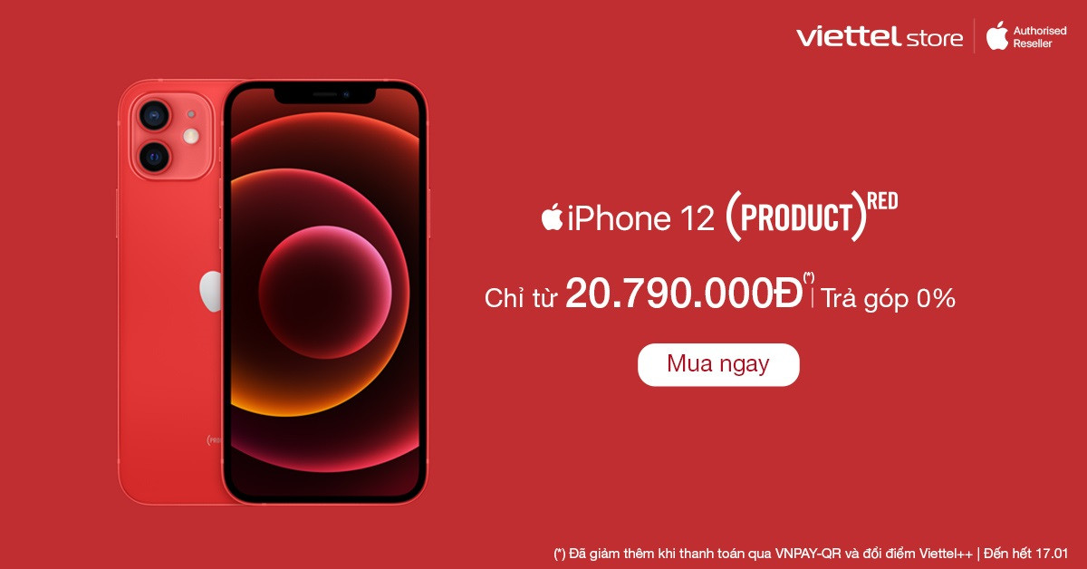Ngoài việc đáp ứng đầy đủ hàng hóa, Viettel Store cũng đưa ra các chương trình ưu đãi hấp dẫn. Củ sạc 20W có giá bán 590.000đ, theo tham khảo thị trường, đây là mức giá tốt hơn rất nhiều so với các đơn vị bán lẻ khác. Hơn nữa, khách hàng được giảm 25% khi mua kèm iPhone 12 Series và giảm 50% khi mua kèm iPhone XR hoặc iPhone 11. iPhone 12 (PRODUCT)RED giá chỉ từ 20.790.000đ áp dụng đến hết 17/01/2021.