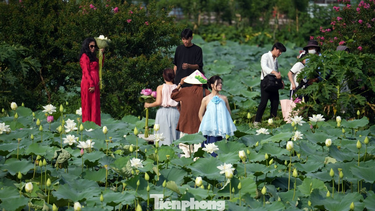 | Có những thời điểm nhiều người phải xếp hàng đợi đến lượt vào những địa điểm đẹp trên hồ sen để chụp hình. |