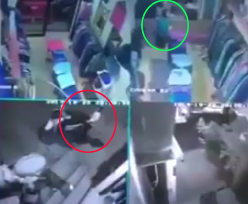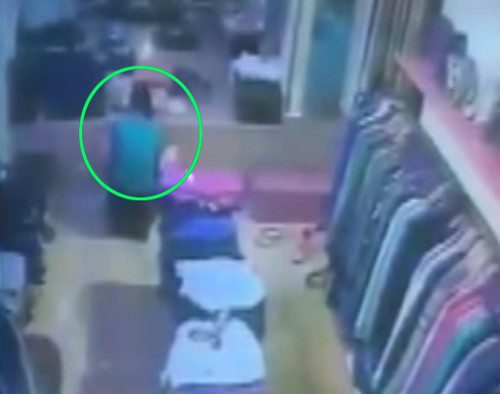Cô gái ngồi trông cửa hàng vẫn không hay biết chuyện gì đang xảy ra.