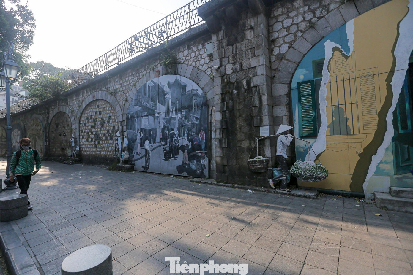 | Tuy nhiên, trong thời gian gần đây, các tác phẩm tranh Bích họa trên đoạn phố này đang xuống cấp, hư hại, không gian vỉa hè bị lấn chiếm gây mất mỹ quan. |