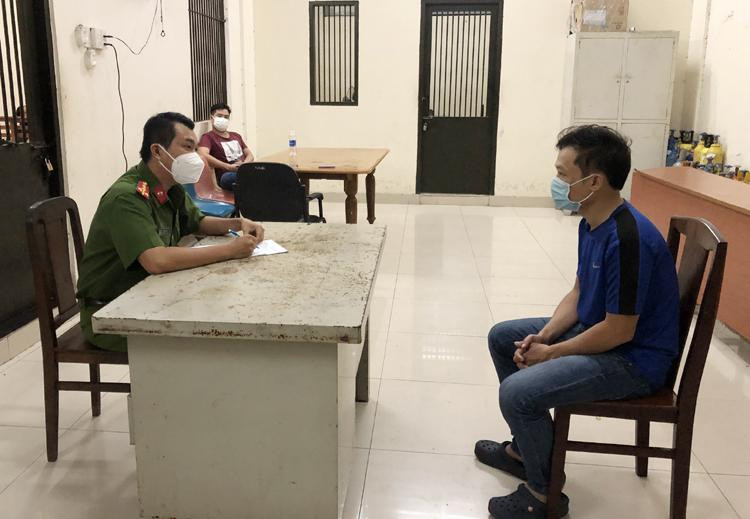 Công an lấy lời khai đối tượng Toàn. Ảnh: Minh Toàn