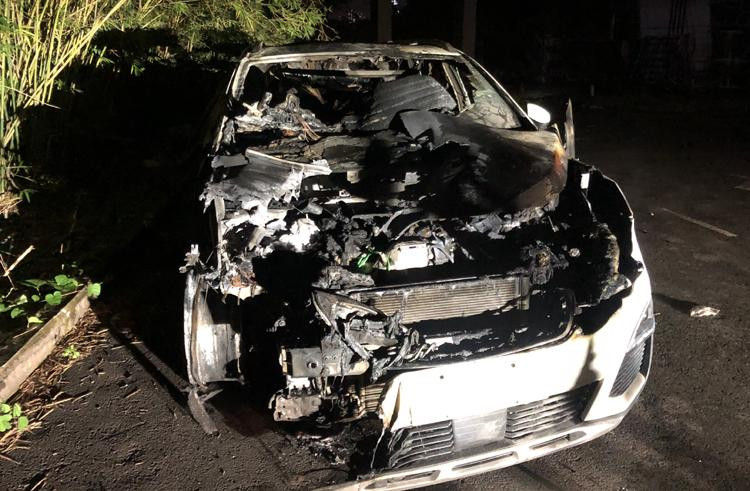 Hiện trường chiếc xe ô tô bị Toàn dùng xăng đốt cháy. Ảnh: Minh Toàn