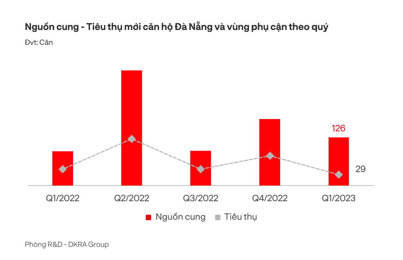 Thị trường căn hộ ghi nhận 2 dự án mở bán trong quý vừa qua, với nguồn cung mới khoảng 126 căn, giảm 28% so với quý trước. Nguồn cung mới trong quý tập trung tất cả tại thị trường Đà Nẵng, trong khi Quảng Nam và Thừa Thiên-Huế tiếp tục khan hiếm nguồn cung mở bán mới. Phân khúc căn hộ hạng C dẫn dắt nguồn cung toàn thị trường và phân bổ chủ yếu tại các quận Liên Chiểu, Ngũ Hành Sơn của Đà Nẵng.