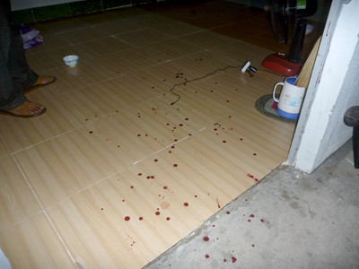 Bất ngờ từ bên ngoài đường, Thông xông thẳng đến nơi ông Toàn đang ngồi ăn cơm và dùng dao Thái Lan đâm nhiều nhát lên người ông Toàn (trong đó 2 nhát trúng ngực và đầu ông Toàn). Do quá bất ngờ và không kịp phản ứng nên ông Toàn lớn tiếng cầu cứu giúp đở và nhanh chóng lao nhanh ra ngoài đường chạy thêm khoảng 200 mét rồi ngã gục.