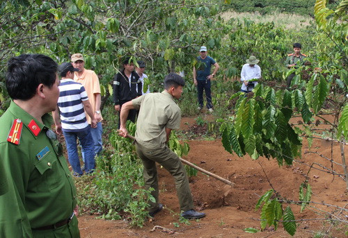 Sau hơn 2 tháng điều tra việc mất tích của anh Hành, Công an Lâm Đồng đã bắt giữ Đức. Từ lời khai nghi can, chiều 16/2 cảnh sát đã khai quật thi thể nạn nhân và mời người vợ lên lấy lời khai.