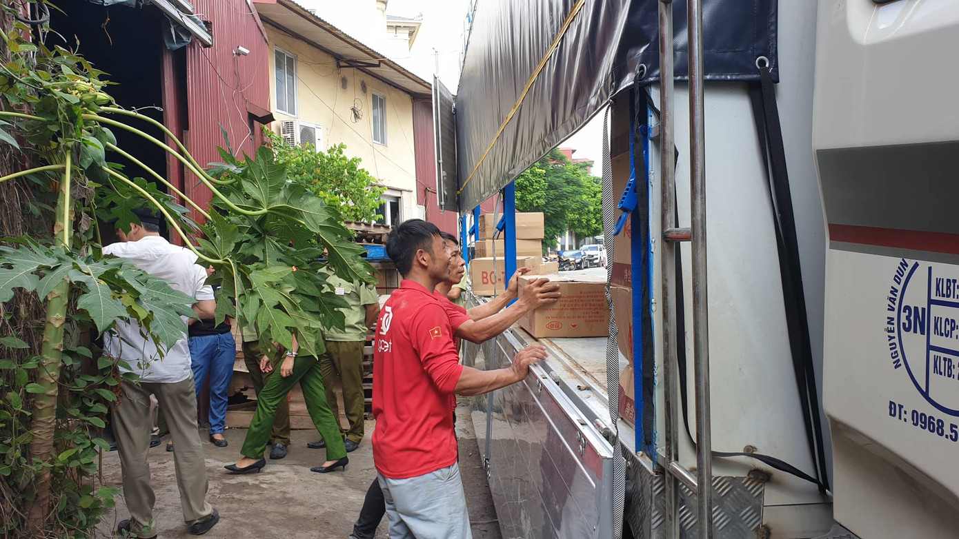 Lực lượng chức năng kiểm đếm hàng hoá Ngay sau đó, lực lượng chức năng đã lập biên bản, đưa toàn bộ số hàng hóa nêu trên về một kho hàng trên đường Vĩnh Tuy, quận Hai Bà Trưng để kiểm đếm, đồng thời lấy lời khai của những người liên quan.