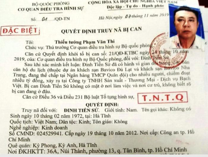 Đối tượng Đinh Tiến Sử là Tổng giám đốc Công ty TNHH Sản xuất Thương mại Dịch vụ Bạch Việt, cũng là chủ khách sạn Bavico Nha Trang và Bavico Đà Lạt.
