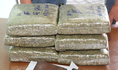 Khi đối tượng này làm xong thủ tục, di chuyển đến cây xăng cách cửa khẩu khoảng 300m thì nhận một ba lô màu đen. Tiến hành kiểm tra, cơ quan chức năng phát hiện có 6 bánh cần sa khô dạng ép (tổng trọng lượng 6kg) được bọc kín bằng ni-lon.