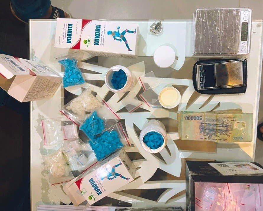 Thông tin ban đầu, chiều 12/3, trinh sát bắt quả tang Nguyễn Công Được (19 tuổi, ngụ TP Đông Hà, tỉnh Quảng Trị) đang nhận 2.000 viên ma túy dạng thuốc lắc tại bến xe trung tâm Đà Nẵng. Khám xét nơi ở của Được tại phường An Hải Bắc (quận Sơn Trà), cảnh sát phát hiện thêm 800 viên thuốc lắc, 120g Ketamin, 2 cân điện tử và một số dụng cụ dùng để phân chia ma túy.