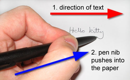 4. Bút bi sẽ khó ra mực vì nếu dùng tay trái, bạn đang đẩy chứ không phải kéo bi mực. Mực bút sẽ không bao giờ ra đều đối với những người thuận tay trái, vì vậy bạn phải dừng bút nhiều lần để chờ mực chảy xuống.