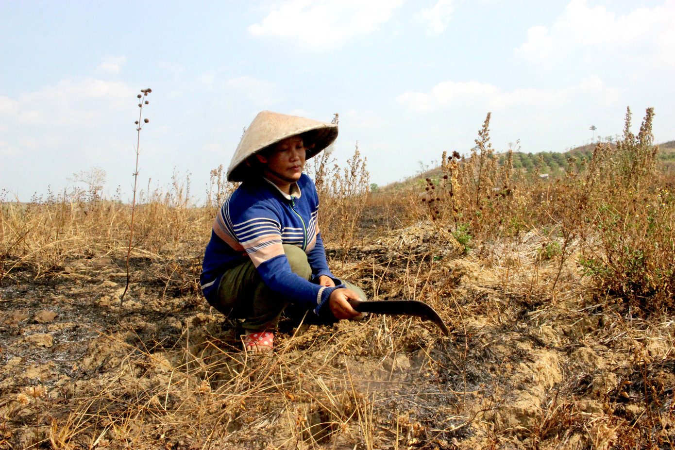 Giữa triền đồi khô khốc, chị Hoàng Thị Si (SN 1988, xã Cư K’bang, huyện Ea Súp) thoăn thoắt phát từng đám cỏ chuẩn bị cho vụ mới. Nhà chị Si có 3 hecta đất rẫy nằm trong đồi sâu, không có ao hồ, sông suối hay kênh mương thủy lợi, mùa vụ gieo trồng đều trông chờ vào “nước trời”. Song việc phụ thuộc vào thời tiết chứa nhiều rủi ro, như năm nay khô hạn đến sớm, 1hecta lúa chỉ thu được 20 bao hạt lép; thu không đủ trả chi phí cày đất, phân, giống… Chưa kể, mỗi năm gia đình chị chỉ trồng một vụ lúa vào mùa mưa còn lại bỏ đất không rất lãng phí. Chị Si cũng muốn làm thêm vụ kiếm tiền nuôi 4 người con nhưng đành bất lực vì không có nước tưới.