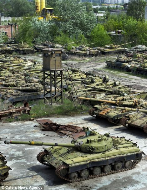 Những “cỗ máy chiến tranh” nằm im trong một bãi bí mật ở thành phố Kharkiv, Slobozhanshchyna, phía đông Ukraine, nơi này chỉ cách biên giới Nga 32 km.