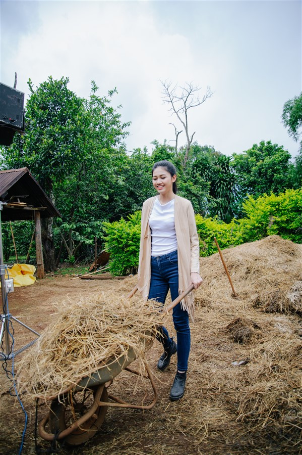 Cô tham gia vào các hoạt động như hái rau, chăn bò, theo chân người dân lên rẫy và còn mặc thử trang phục của thiếu nữ người Gia Rai.