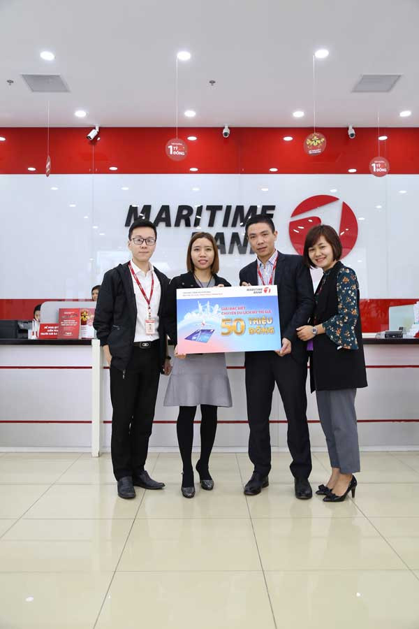 Cùng với giải thưởng chuyến du lịch Mỹ trị giá 50 triệu đồng được trao cho chị Lương Thị Minh Tuyết, Maritime Bank còn trao hàng ngàn sạc pin dự phòng sành điệu cho những khách hàng đầu tiên mở mới và phát sinh giao dịch chi tiêu từ 500.000 đồng trở lên.