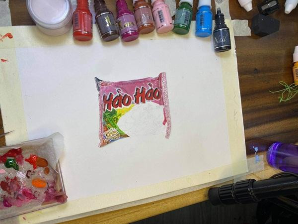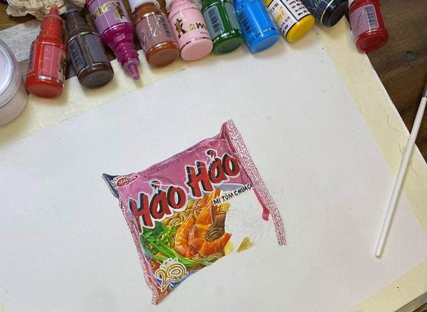 Nếu so sánh giữa hai bức vẽ năm 2016 và phiên bản 2021, rõ ràng trình vẽ của anh chàng đã tiến bộ hơn hẳn so với trước. Phát cho biết trong quá trình vẽ gói mì, công đoạn khó nhất chính là việc phối màu và tả chất liệu.