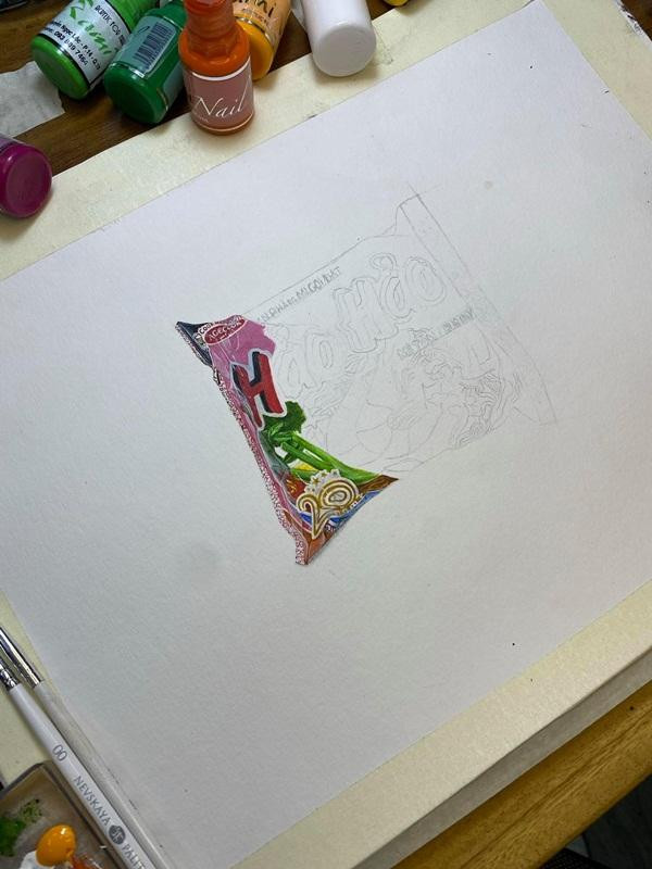 Xem trọn các công đoạn vẽ tranh gói mì của tác giả Lê Đại Phát.