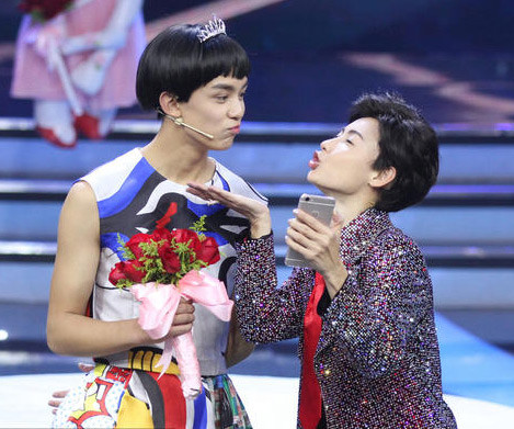 Trương Bá Chi trông thật lạ lẫm với mái tóc ngắn, bộ trang phục có phần nam tính và gương mặt không trang điểm khi tham gia một chương trình truyền hình thực tế tại Trung Quốc, ngày 11/1.
