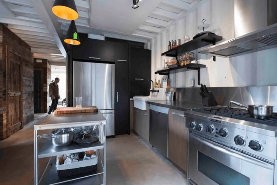 Khu vực bếp khá hiện đại với đầy đủ tủ lạnh, lò vi sóng, lò nướng, hút mùi,... Căn nhà quá tuyệt vời cho cô gái sống một mình