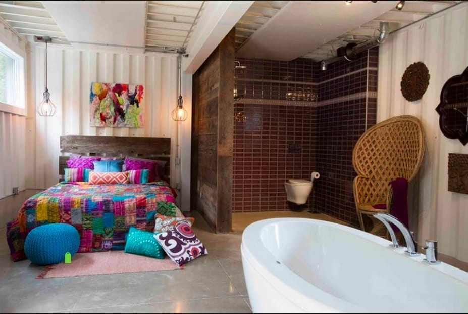 Một chiếc bồn tắm được đặt một cách táo bạo ngay giữa căn phòng