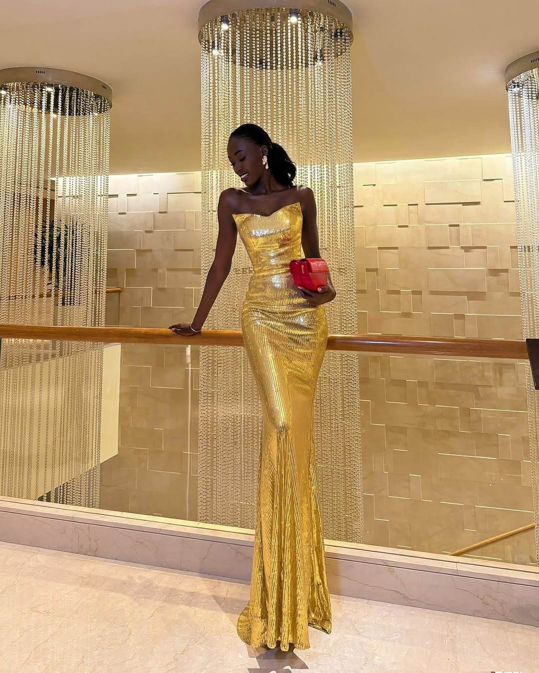 Nếu như ở đời thường, đại diện Bờ Biển Ngà chưa có tố chất “beauty queen” thì khi tạo dáng chụp ảnh, cô như lột xác thành một con người khác. Chỉ cần khoác lên bộ váy dạ hội, trang điểm làm tóc cẩn thận là Faboumata Coulibaly nhìn lộng lẫy như nữ thần.