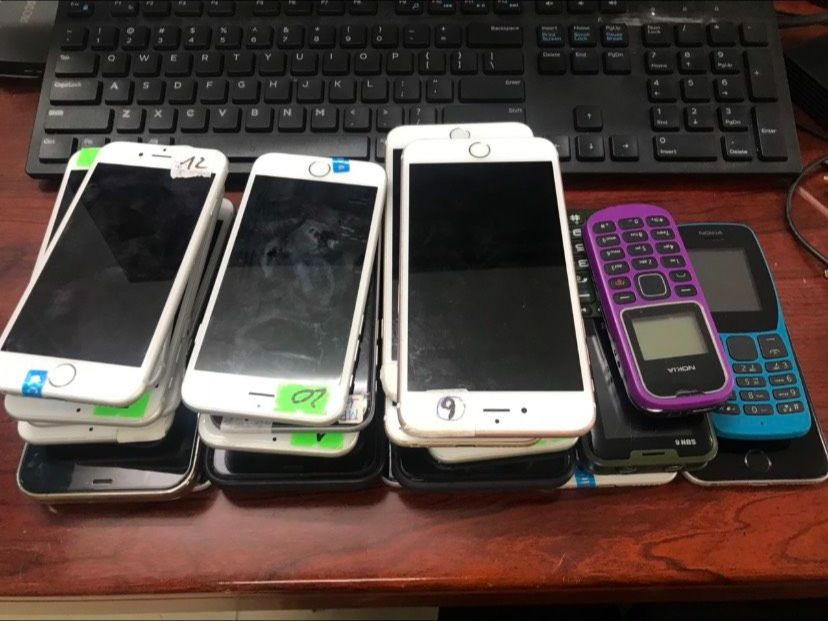 | Cơ quan công an thu giữ nhiều điện thoại, sim thẻ của nhóm đối tượng trên. |