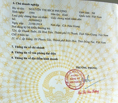 Theo giấy phép, doanh nghiệp tư nhân Nguyễn Bích Phượng hoạt động trong các ngành nghề: Kinh doanh quán ăn, hàng ăn uống; buôn bán thực phẩm, buôn bán đồ uống… Mặc dù là một doanh nghiệp tư nhân hoạt động trong lĩnh vực buôn bán đồ uống, nước giải khát, nhưng trên thực tế, địa điểm kinh doanh chỉ là một quán cà phê lụp xụp, thuê trên đất của người khác.