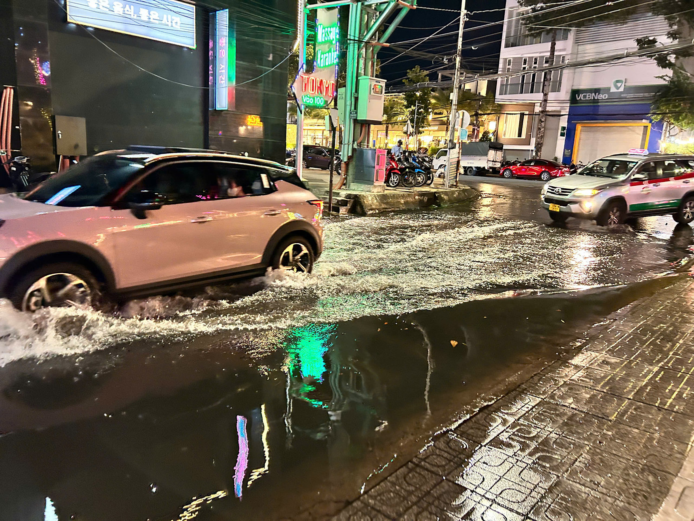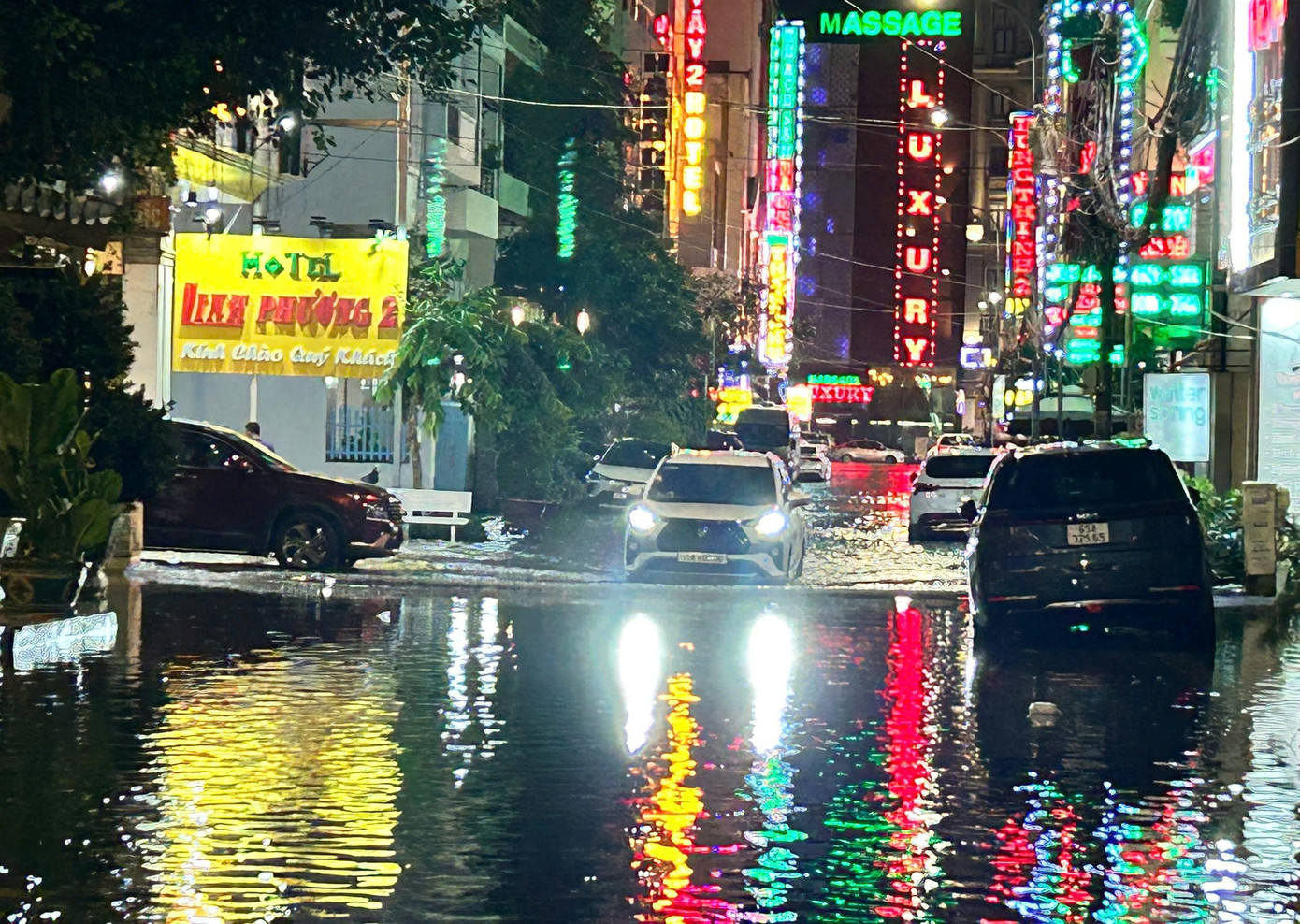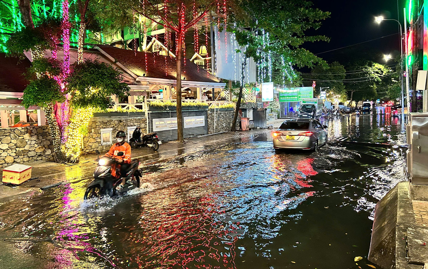 | Đường Trần Đại Nghĩa tối 2/4 chìm trong nước. |