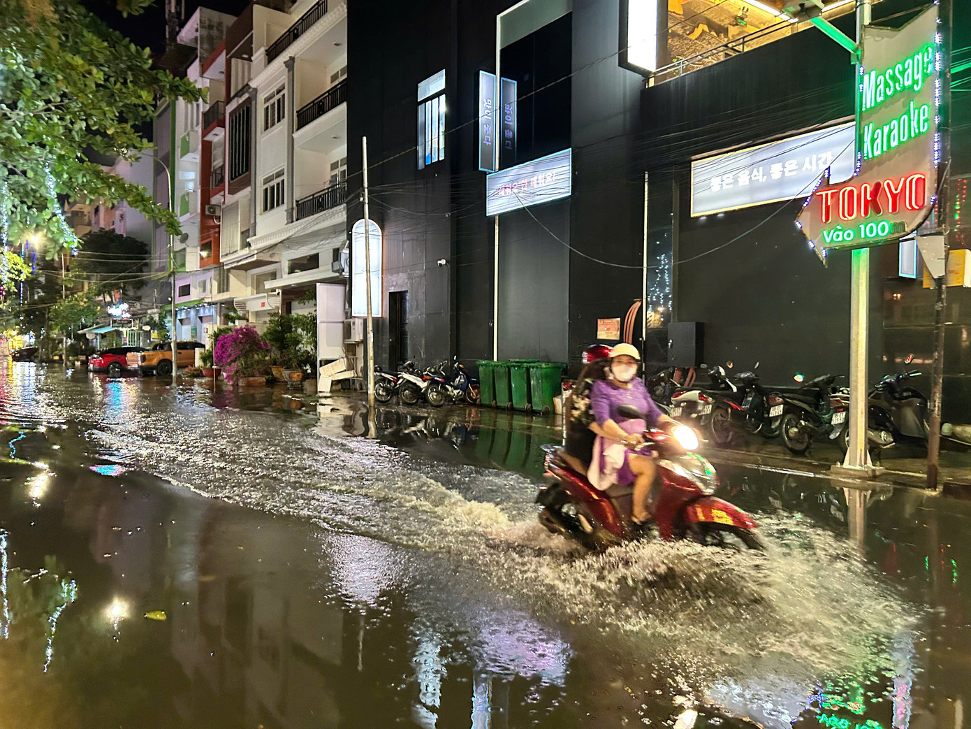 “Mỗi tháng hai đợt ngập, đầu và giữa tháng, mỗi đợt kéo dài 5-6 ngày chứ không chỉ 1-2 ngày như trước, ngập cũng sâu hơn, tràn cả vào nhà. Thời điểm ngập cũng vào giờ cao điểm, cả một khu kinh doanh sầm uất chìm trong biển nước, bà con rất khó khăn trong sinh hoạt và làm ăn”, anh Bình nói.