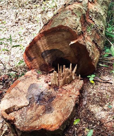 Khoảng 20 giờ 30’, 4 đối tượng xông vào nhà dùng dao khống chế rồi trói, nhét giẻ vào miệng và bịt mắt anh Huy, sau đó dùng cưa máy cưa đổ cây gỗ trắc hơn 60 năm tuổi, đường kính 60cm, dài hơn 16m. Đây là cây trắc duy nhất còn lại trong rừng thực nghiệm Lang Hanh. Trong lúc các đối tượng chuẩn bị cưa tiếp cây cẩm lai (đường kính 40cm) thì bị phát hiện. Cả nhóm nháo nhào bỏ chạy.