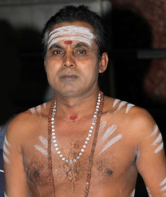 Một thầy tế đang thực hiện nghi lễ tắm sữa trong ngôi đền giữa động Batu.