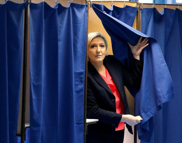 Cùng lúc đó, bà Marine Le Pen tiến hành bỏ phiếu tại Henin-Beaumont, một thị trấn nhỏ phía Bắc nước Pháp, nơi đa phần cử tri ủng hộ đảng Mặt trận Quốc gia (FN) mà bà Le Pen từng lãnh đạo. Ảnh: Reuters